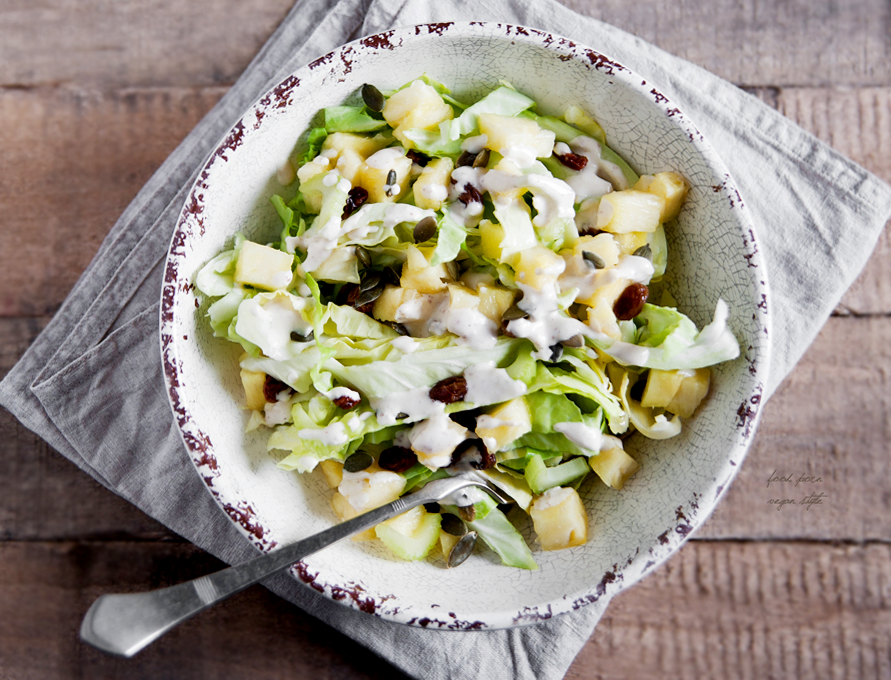 YOUNG CABBAGE SALAD, WITH PINEAPPLE, RAISINS AND SWEET MUSTARD SAUCE